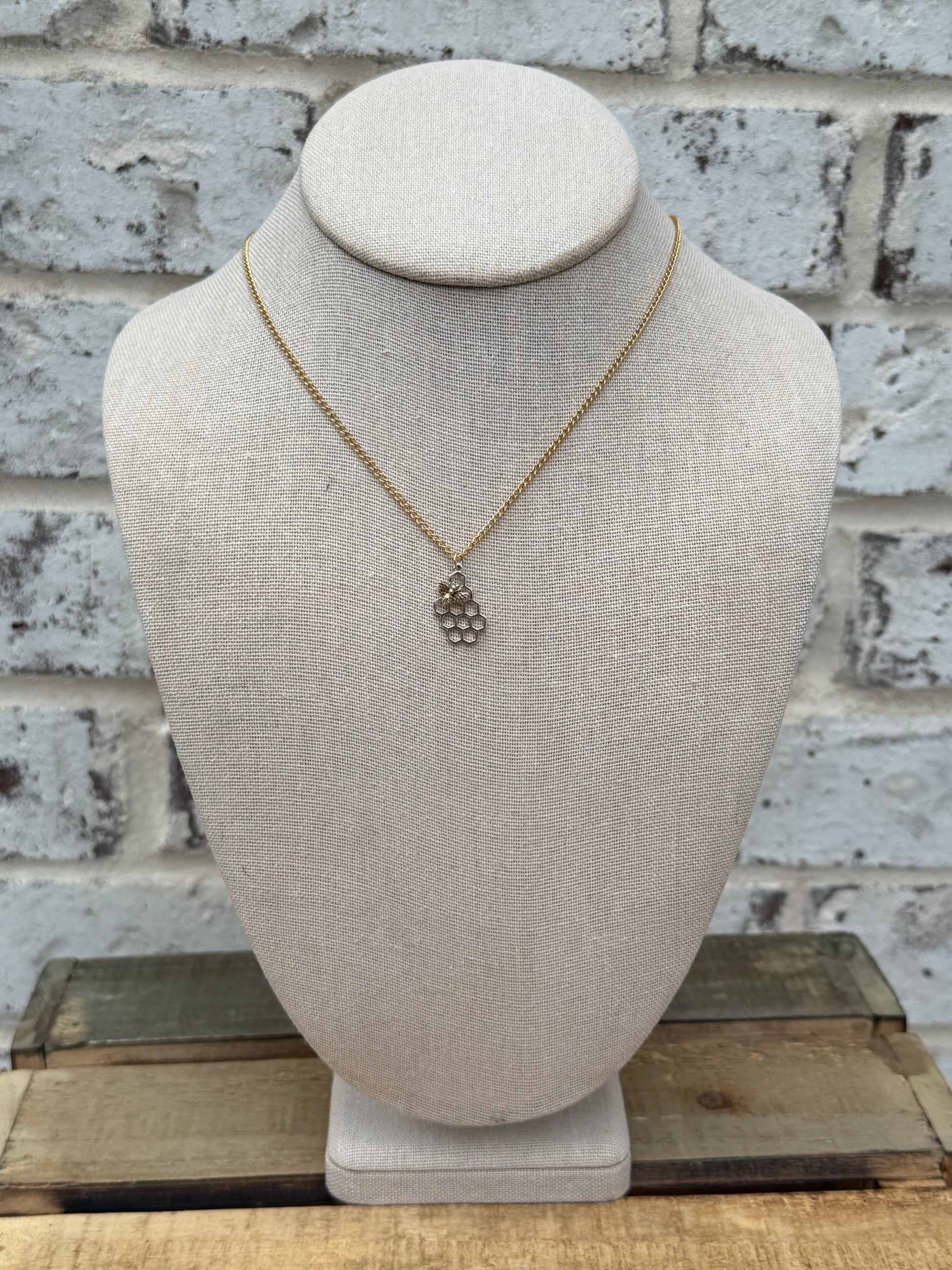 Honeycomb Bee Charm Base Necklace - 14k GF