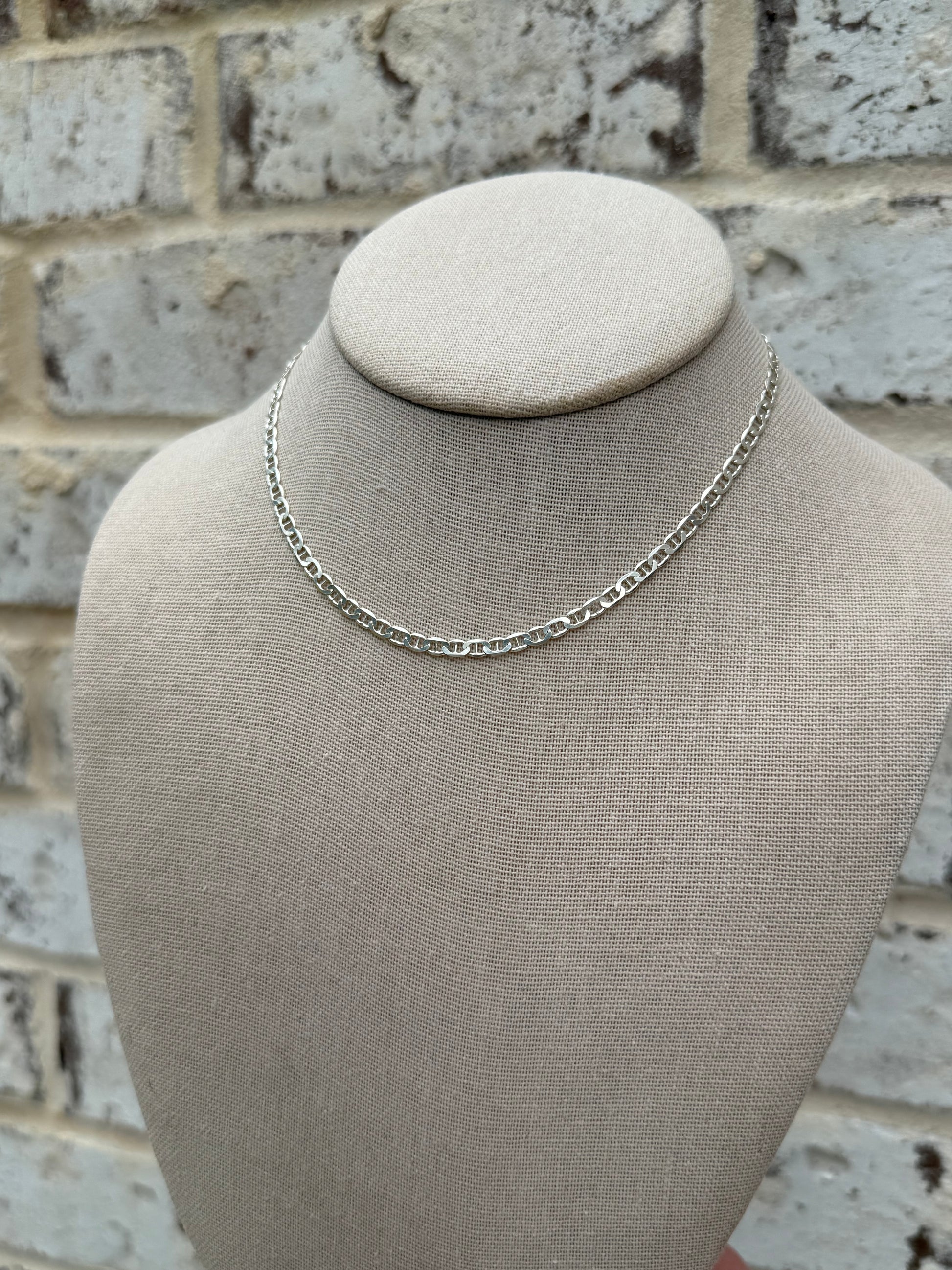 Our 12” sterling silver layering link chains are designed to connect seamlessly to the top two holes of your base necklace, creating a layered look that sits beautifully above it. This chain is made to work exclusively with our patented base necklace allowing you to swap out layering chains for different styles without buying a whole new necklace. The patented design is not anti twist but it does greatly reduce twisting when layering